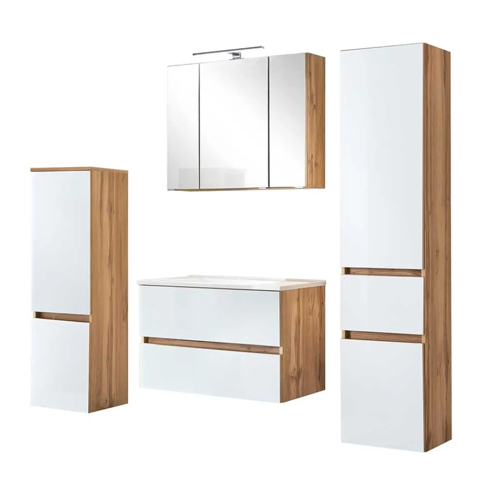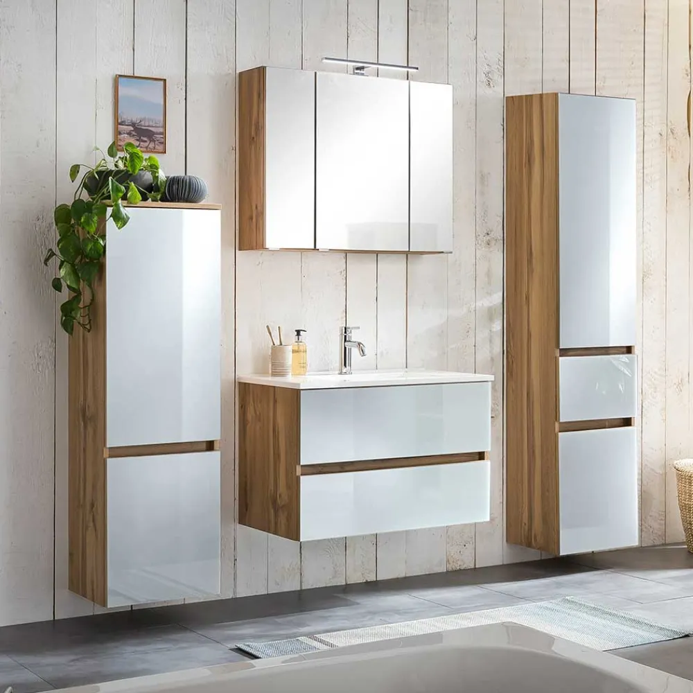 - Faszinierende Badmöbel Kombination in Weiß und Wildeichefarben