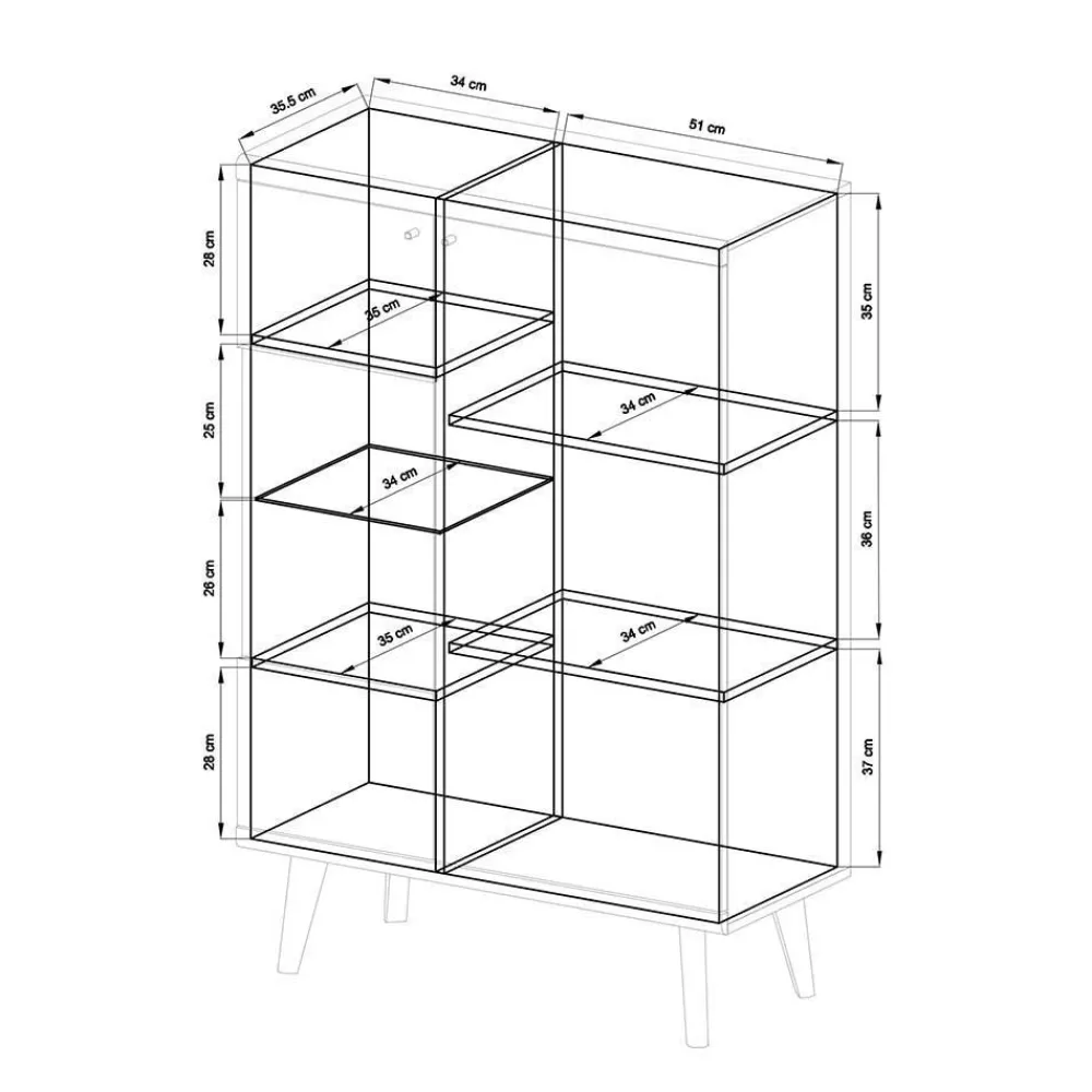 - Zwei Türen, hinter der linken befinden sich drei und hinter der rechten zwei Einlegeböden