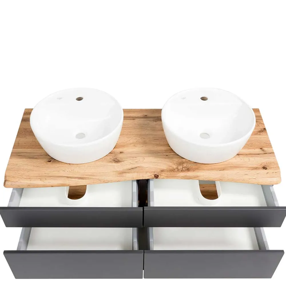 - Attraktiver Doppel-Waschtisch mit Baumkante in Wildeichefarben und Dunkelgrau
