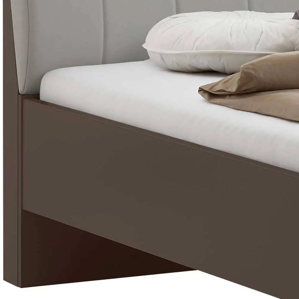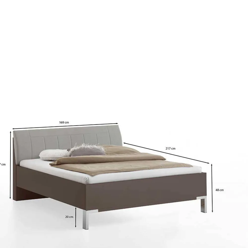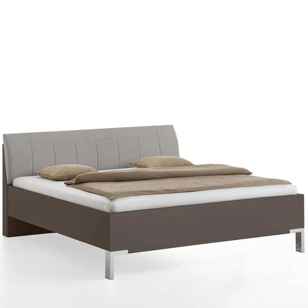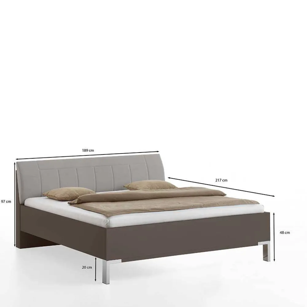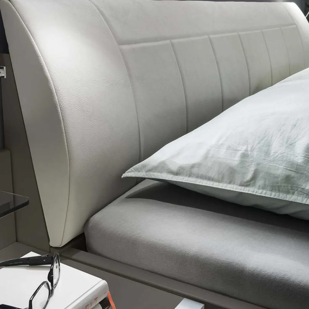 - Gepolstertes Kopfteil, elegant gesteppt, bezogen mit hellgrauem Kunstleder (100 % Polyurethan)