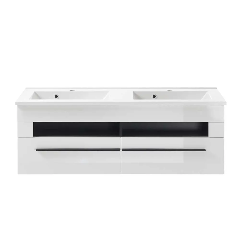 - Formschöner Doppelwaschtisch aus Mineralguss mit Ablauflöchern