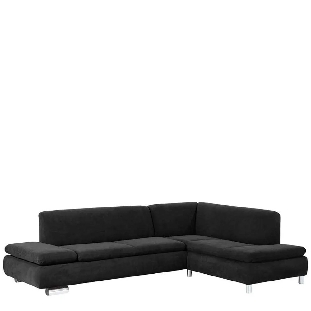 - Zeitloses Ecksofa in Schwarz und Chromfarben