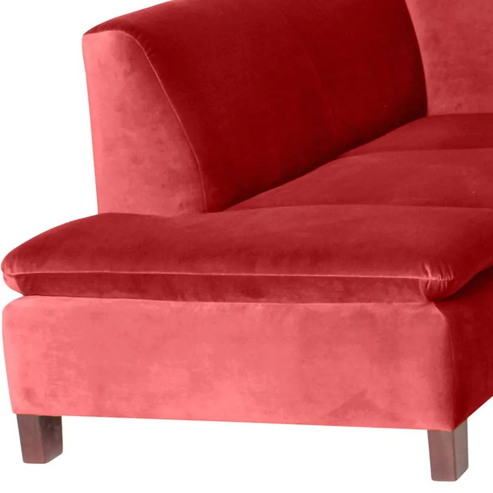- Exzellentes Ecksofa in Ziegelrot und Nussbaumfarben