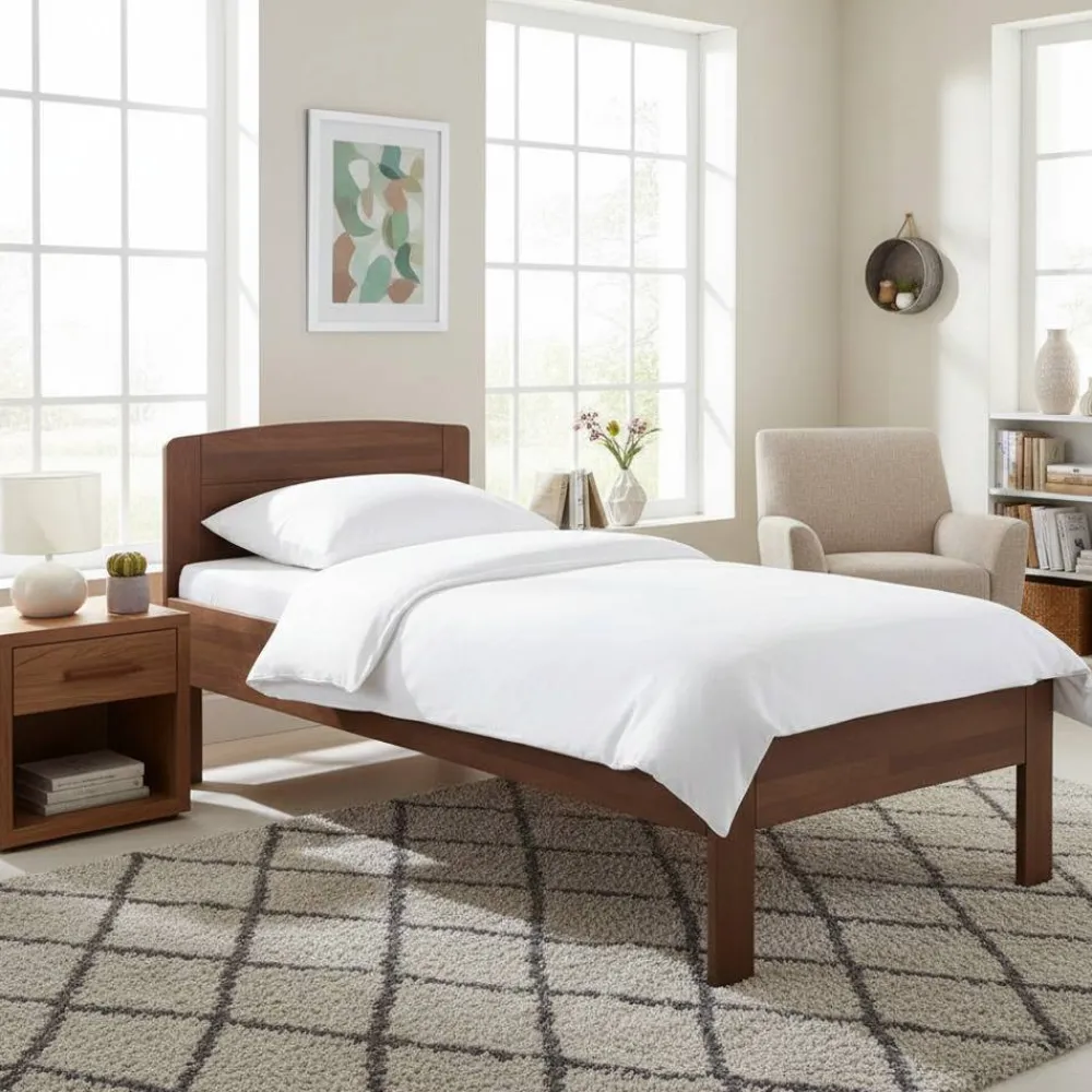 - Hervorragendes Komfort-Einzelbett in Walnussfarben