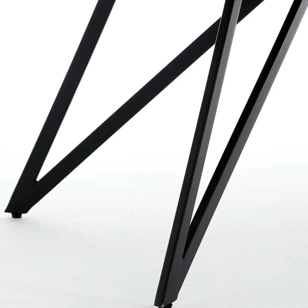 - Schwarz pulverbeschichtetes, schräg konstruiertes Metallgestell in dekorativer V-Form