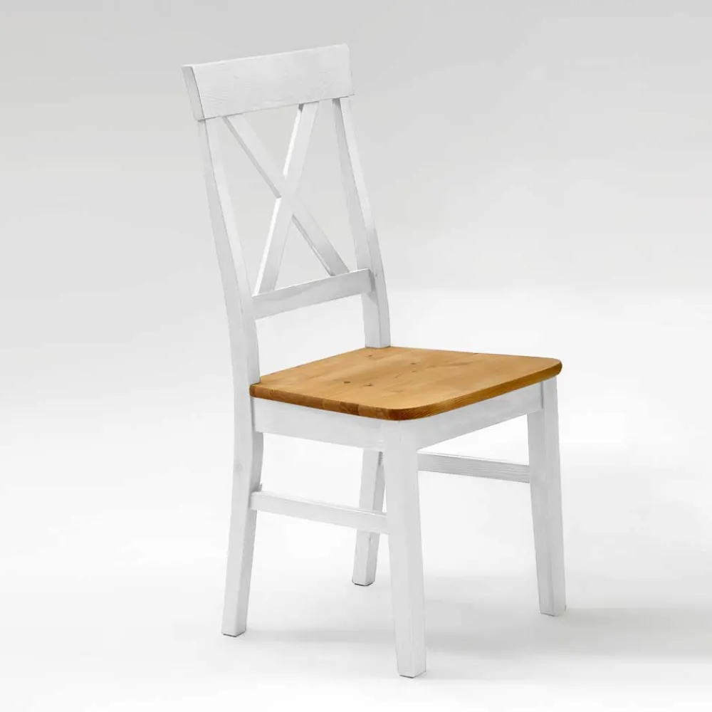 - Sitzflächen in Kiefer Laugenfarben, Gestell und Lehne in Weiß