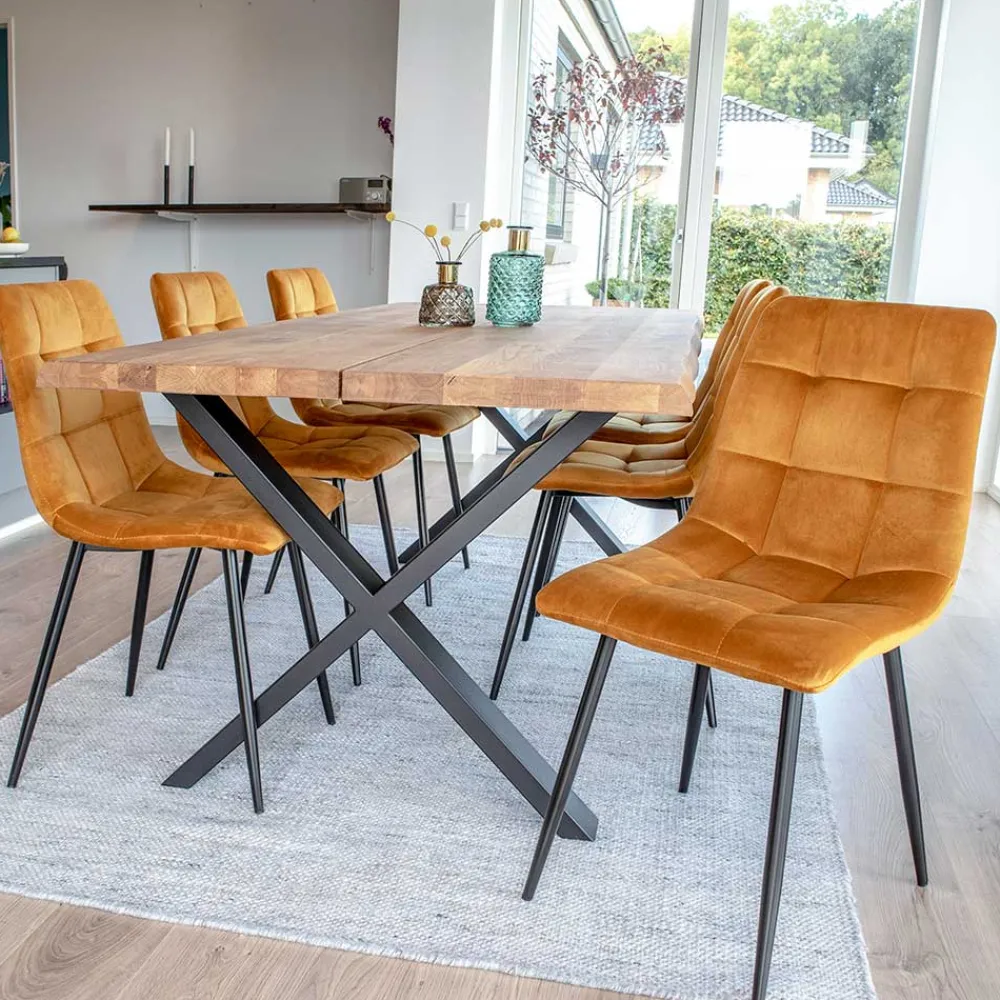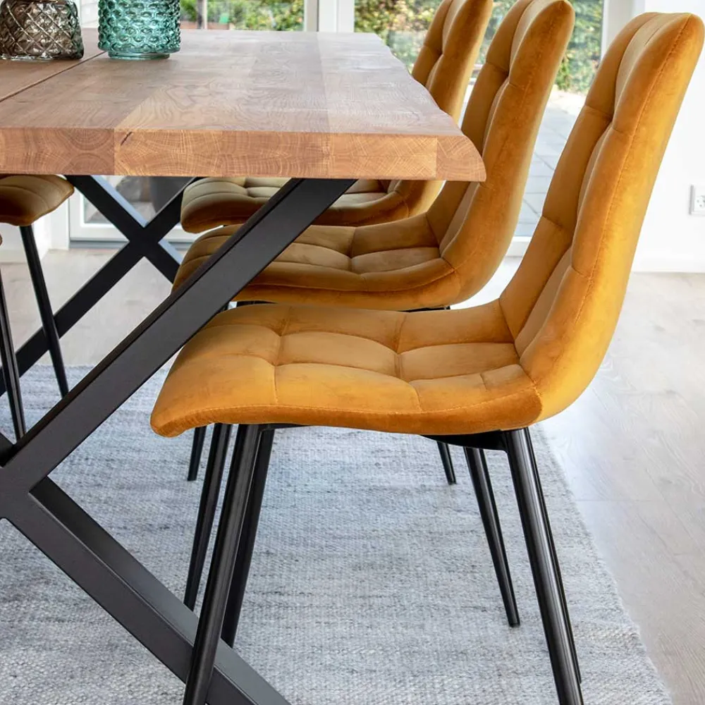 - Exzellente Esszimmergruppe in Ockergelb, Eichefarben und Schwarz
