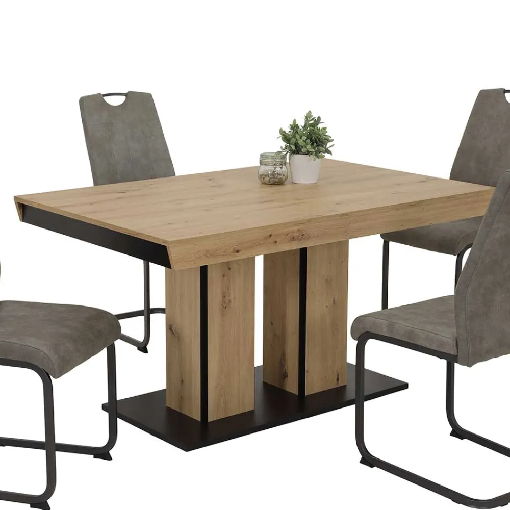 - Aktueller Esstisch in Wildeichefarben und Schwarz