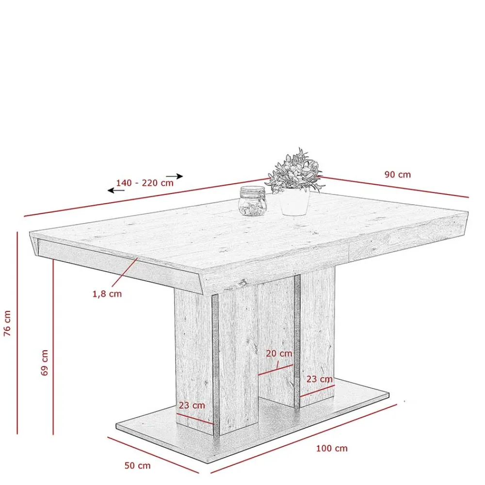 - Verlängerbar um je 40 cm, von 140 bis auf 220 cm