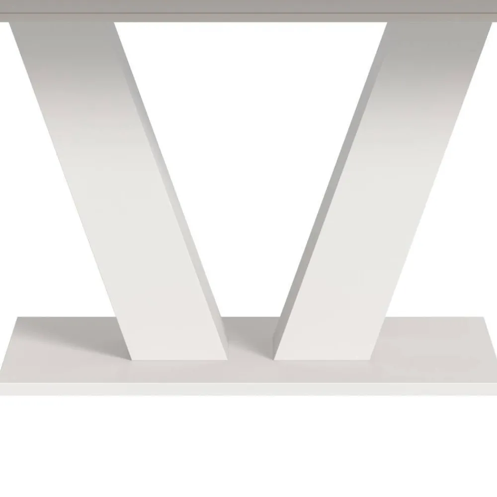 - Weißes Fußgestell in V-Form mit stabiler Bodenplatte