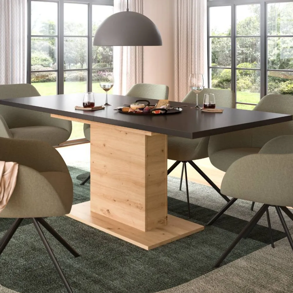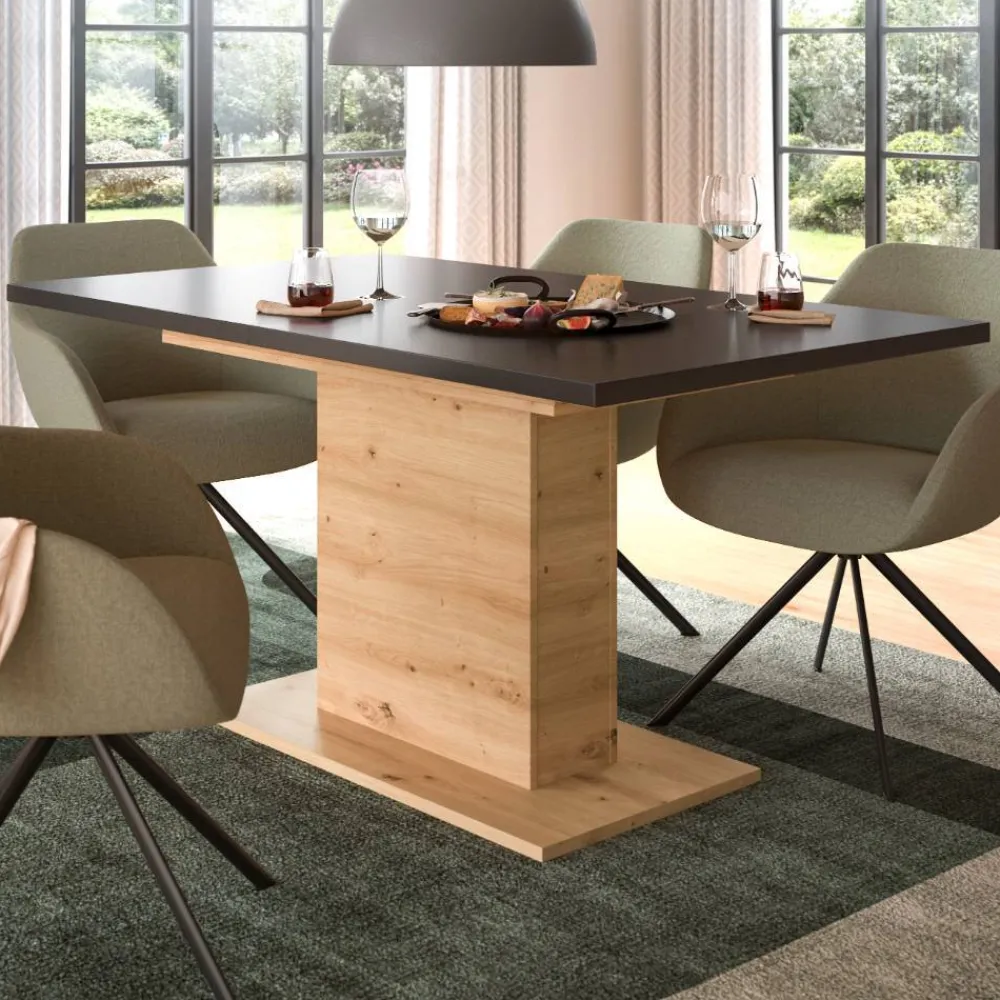 - Solider Esstisch in Grau und Holzoptik Wildeiche