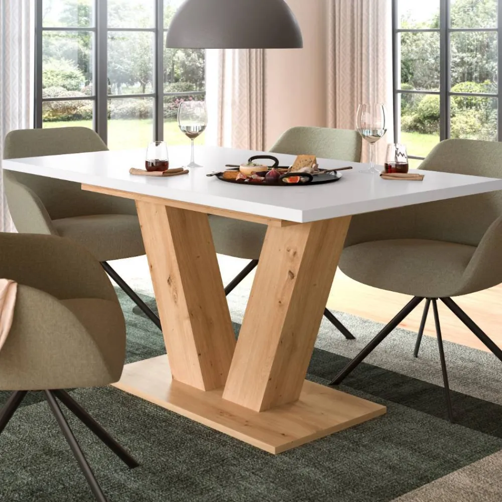 - Aktueller Küchentisch in Weiß und Wildeichefarben