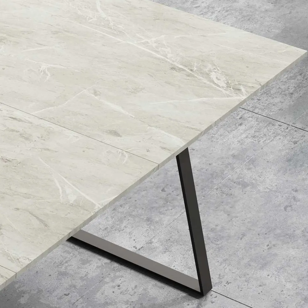 - Holzwerkstoffoberfläche melaminbeschichtet in Marmoroptik, Metall lackiert