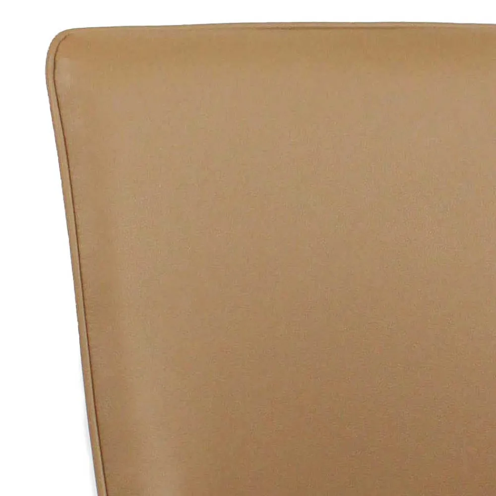 - Sitzfläche in Kunstleder Hellbraun, rückseitig in Weiß bezogen, umlaufender Keder