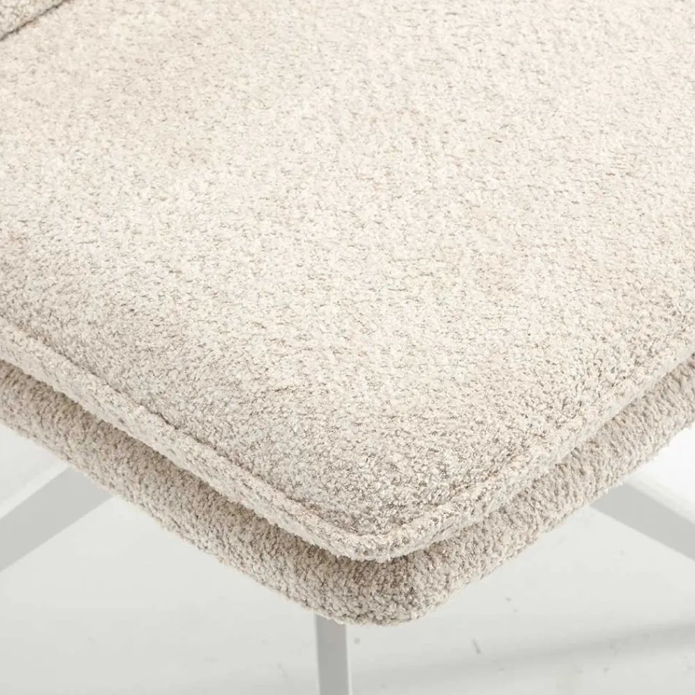 - Pflegeleichter Boucle Bezug aus 100 % Polyester mit nach außen gestellten Nähten