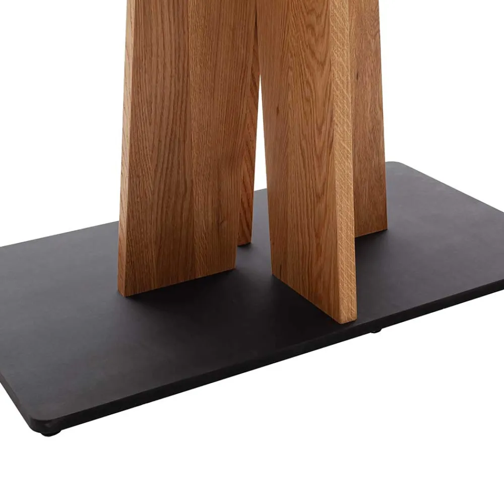 - Kreuzförmiges Säulengestell aus Wildeiche mit standsicherer Bodenplatte aus schwarz lackierter MDF