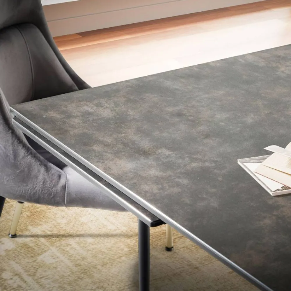 - Hochwertige Keramik Tischplatte in Steinoptik auf einer Glasplatten Basis