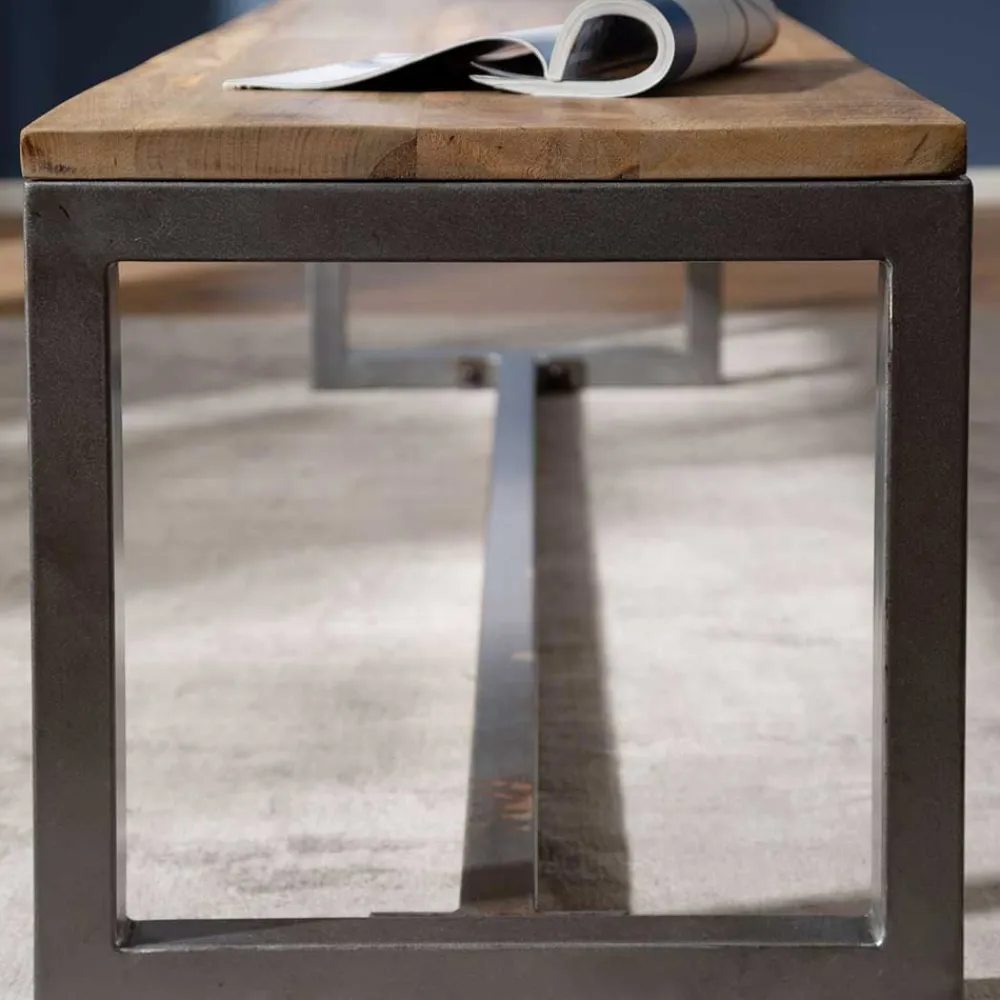 - Erstklassige Sitzbank in Mangoholz Naturfarben und Schwarzgrau