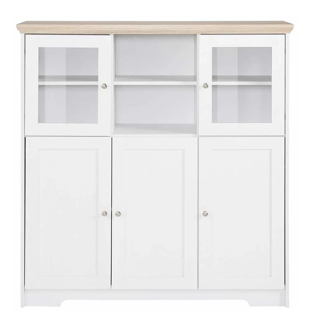 - Preiswertes Highboard in Weiß und Eichefarben