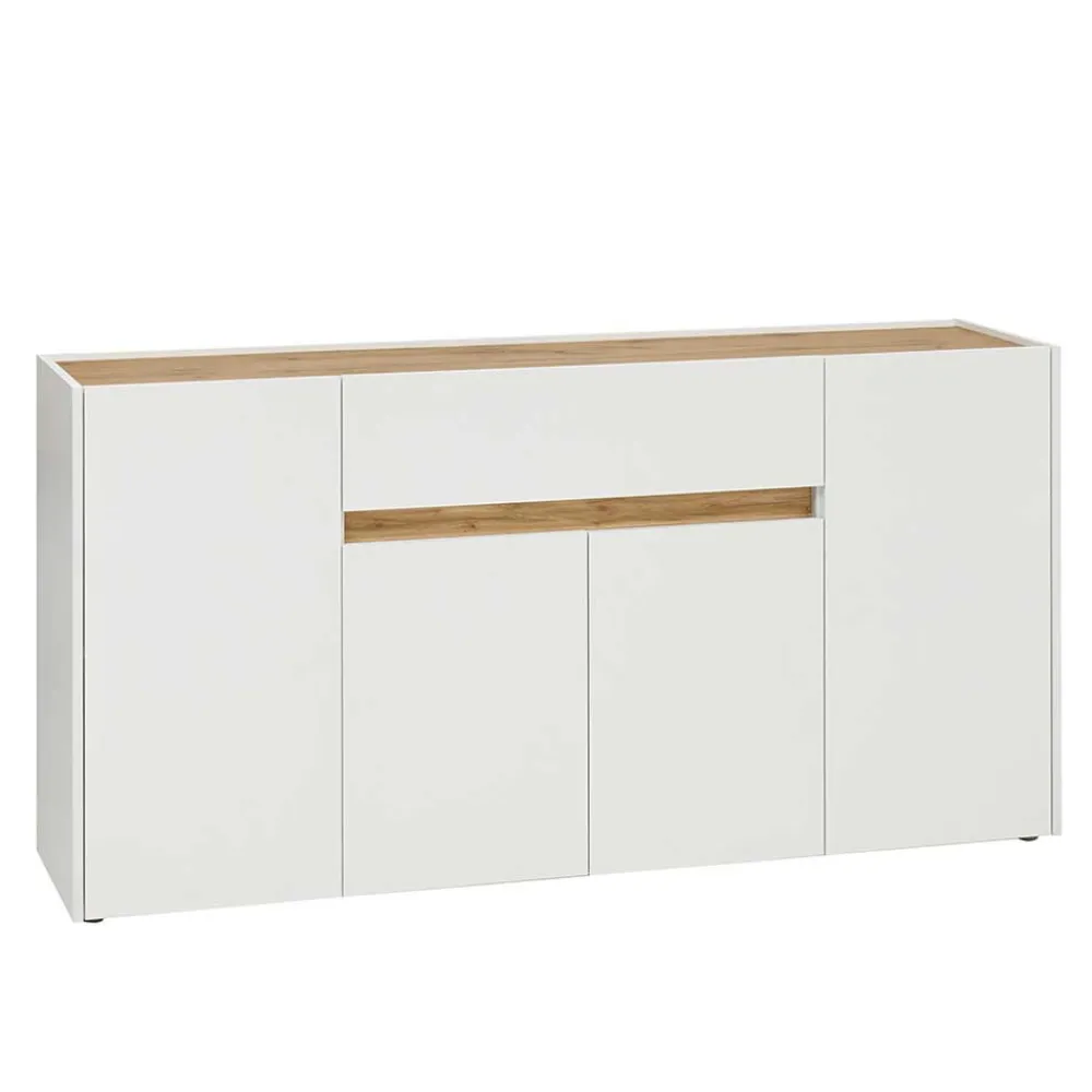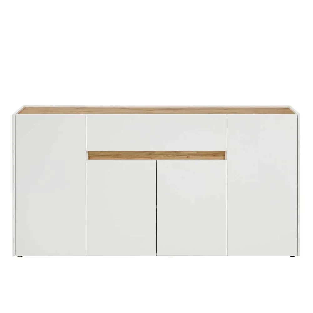 - Gradliniges Sideboard in Weiß und Wildeichefarben