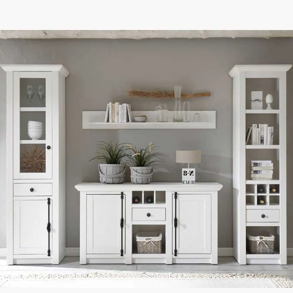 - Hochwertige Landhaus Wohnwand in Pinie Weiß