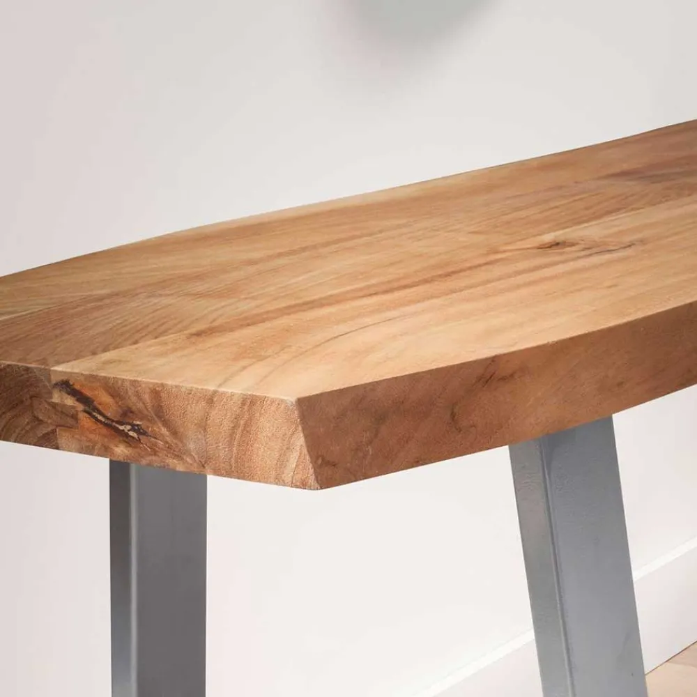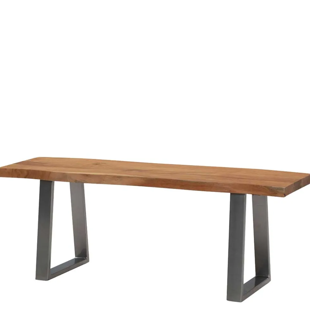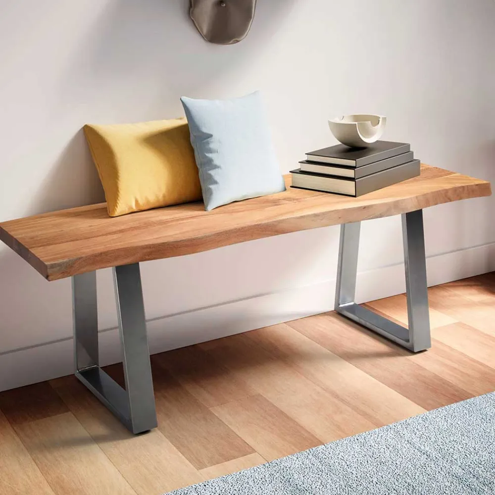 - Markante Garderoben Sitzbank in Akazie- und Chromfarben