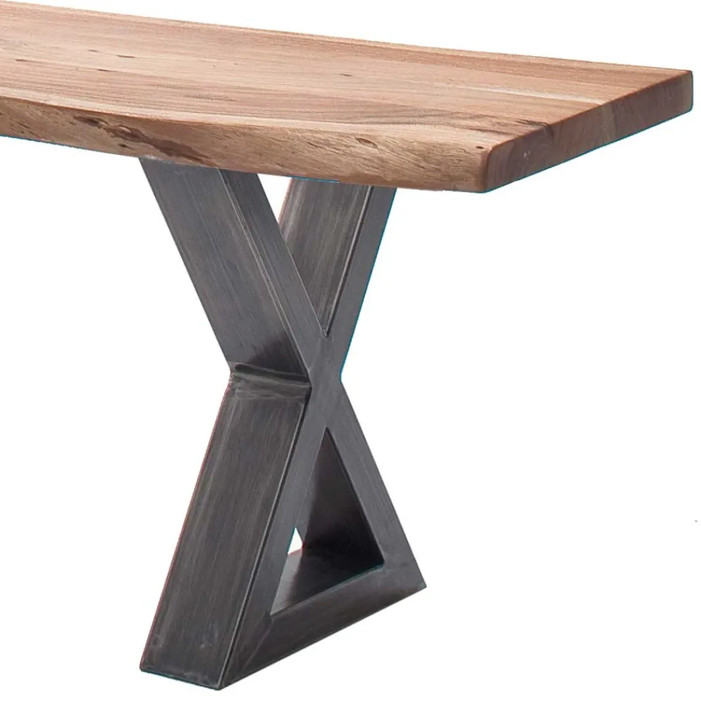 - Die Sitzbank präsentiert sich in Akazie Natur- und Altsilberfarben im Industry Stil