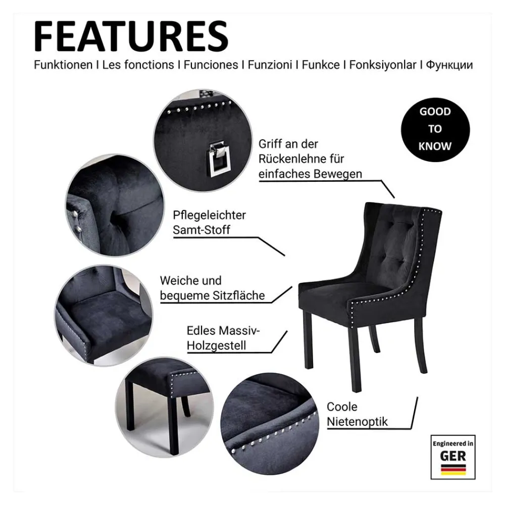 - Exklusiver Polsterstuhl in Silbergrau und Schwarz