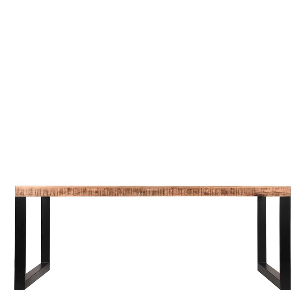 - Robuster Esstisch in Mangoholz Naturfarben und Schwarz
