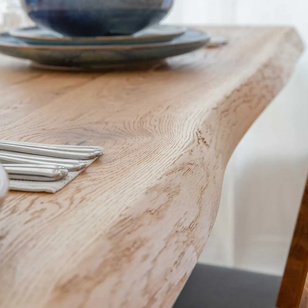 - Tischplatte in organischer Form, Tiefe variiert, da aus dem Stamm geschnitten wie gewachsen