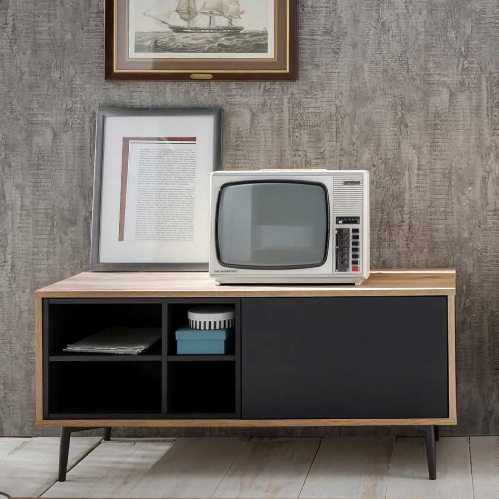 - Attraktives TV-Lowboard in Anthrazit und Holz Naturfarben