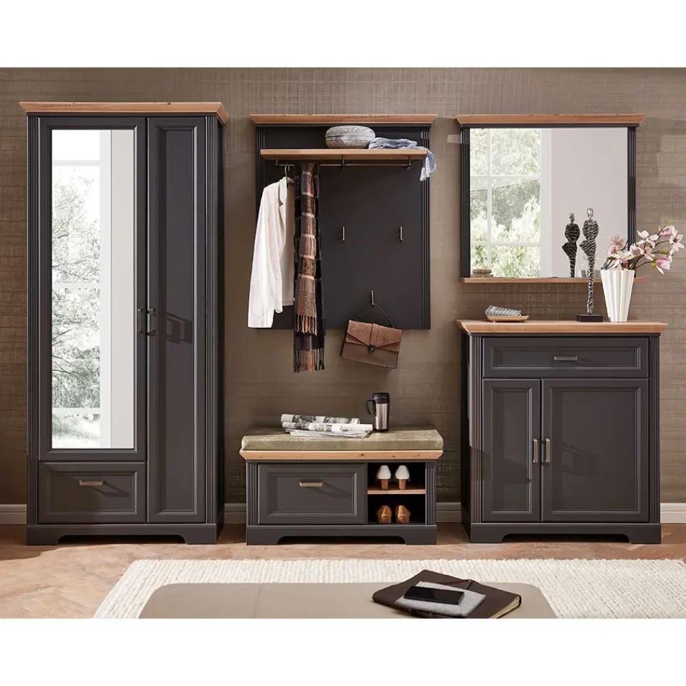 - Moderne Garderobenkombination in Dunkelgrau und Eichefarben