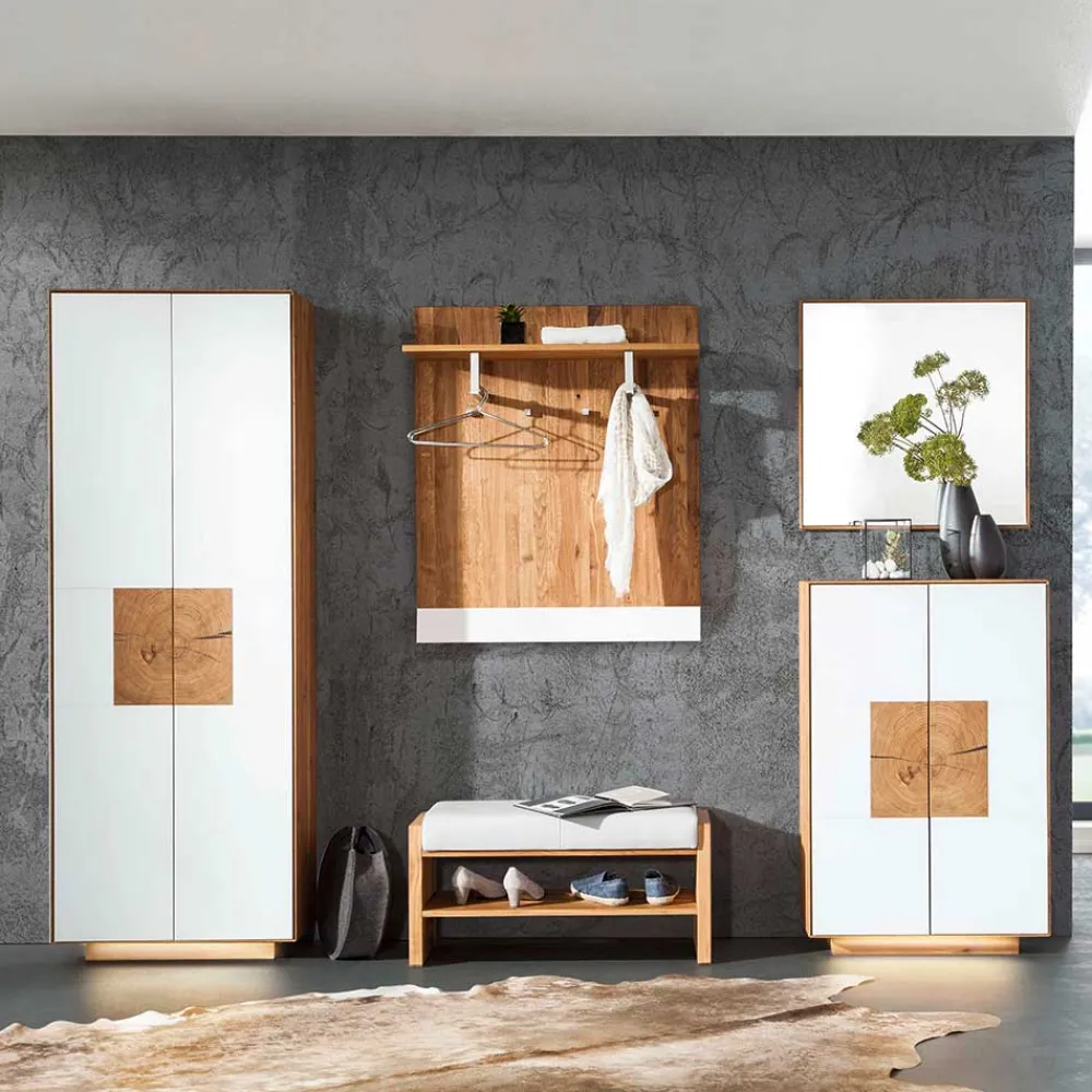- Exklusives Garderoben Set in Weiß und Wildeichefarben