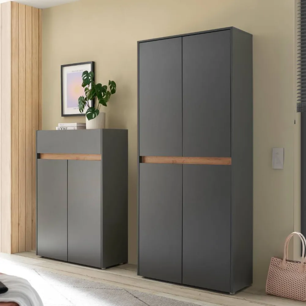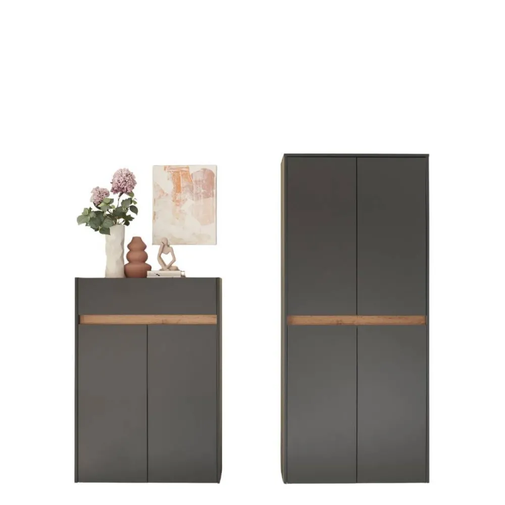 - Ansprechende Garderobenmöbel in Anthrazit und Wildeichefarben
