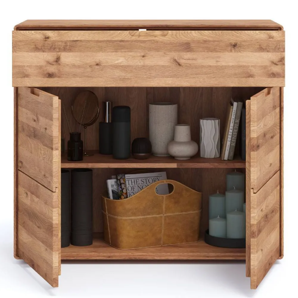 - Jedes Möbel ist ein Unikat, durch das natürliche Spannungsfeld des Holzes sind Wölbungen und Risse naturbedingt und nicht vermeidbar