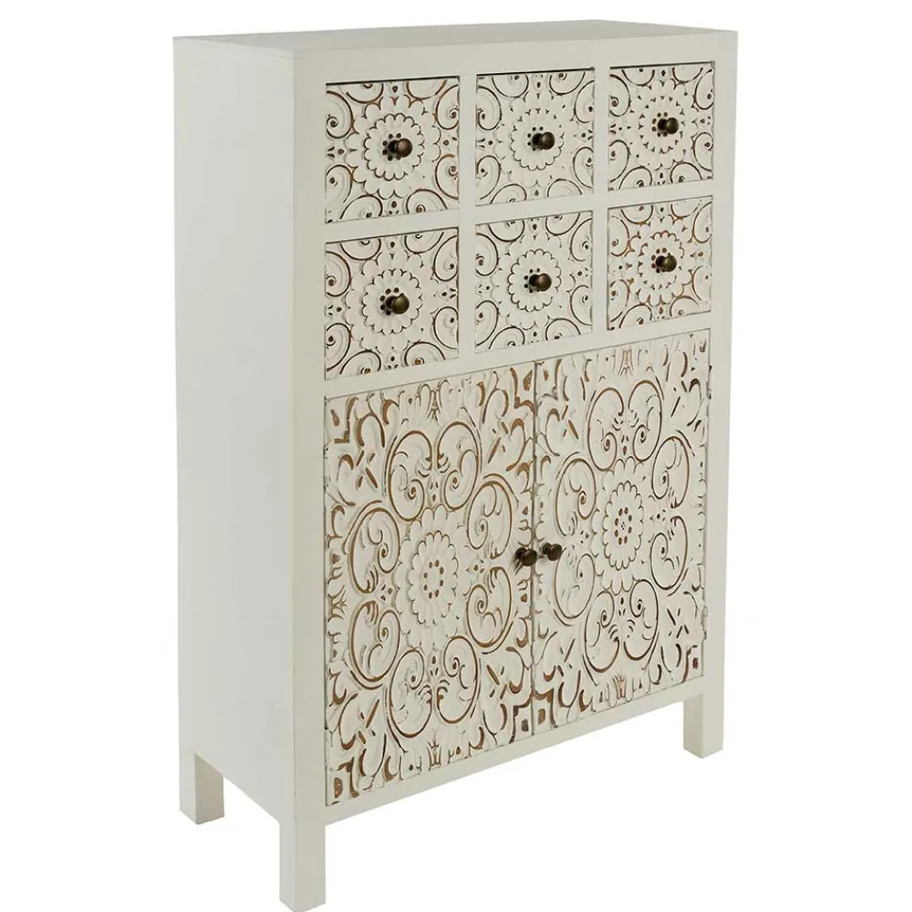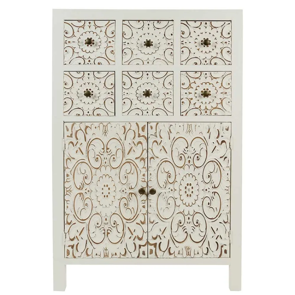 - Romantische Kommode in Antikweiß und Goldfarben