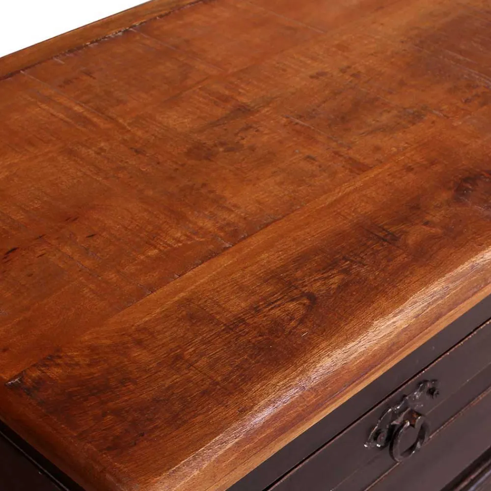 - Aus Mangobaum Massivholz (Rahmen, Deckplatten, Zierleisten) und solider MDF (Füllungen, Rückwände, Einlegeböden)