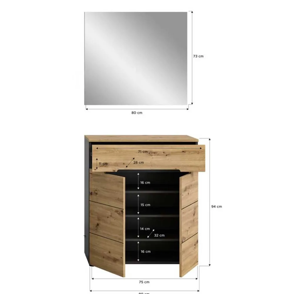 - Klasse Dielenmöbel in Wildeichefarben und Grau