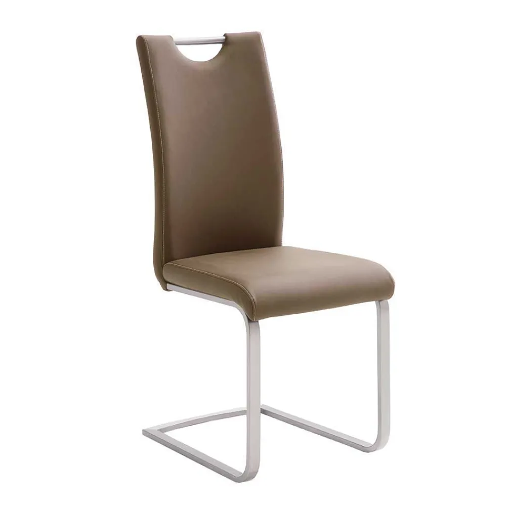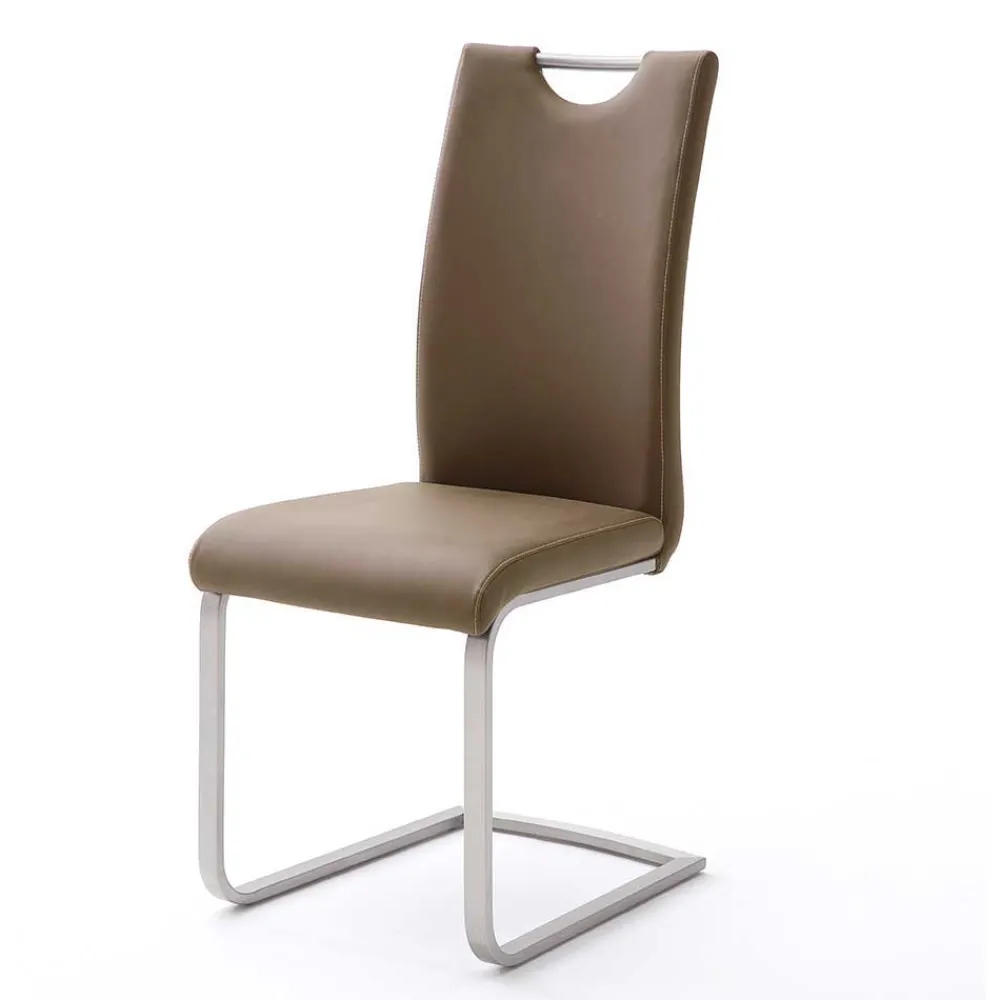 - Kompakte Schwingstühle in Hellbraun und Silberfarben