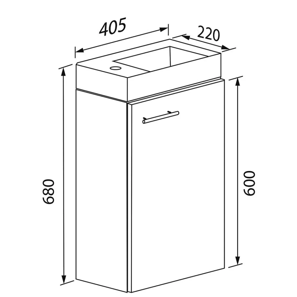 - Inklusive Keramik Waschbecken, Armatur Installation links vorgesehen