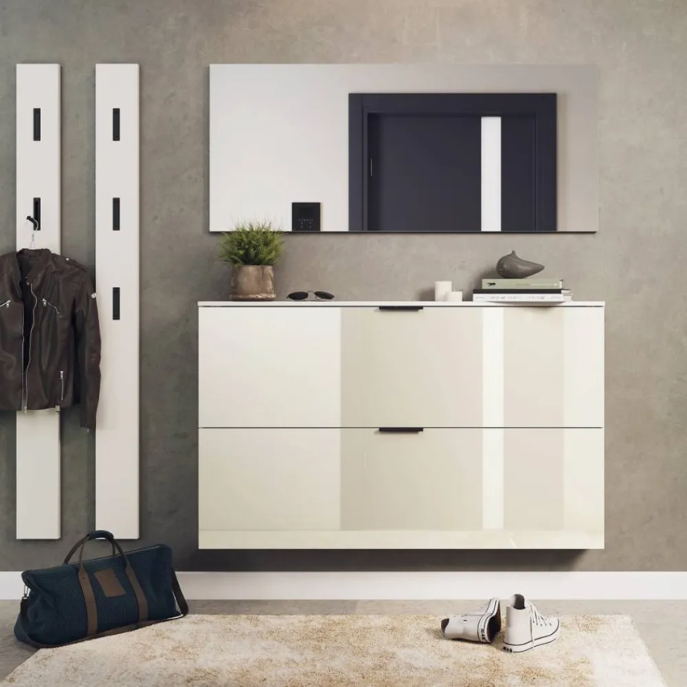 - Hinter jeder Klappe zwei Metall-Gitterkörbe, je nach Schuhgröße Platz für bis zu 12 Paar