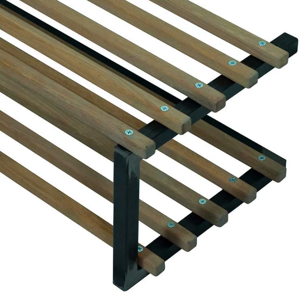 - Die Breite der Stange beträgt 76 cm, die Breite der Lamellen auf der Oberseite der Garderobe 71 cm