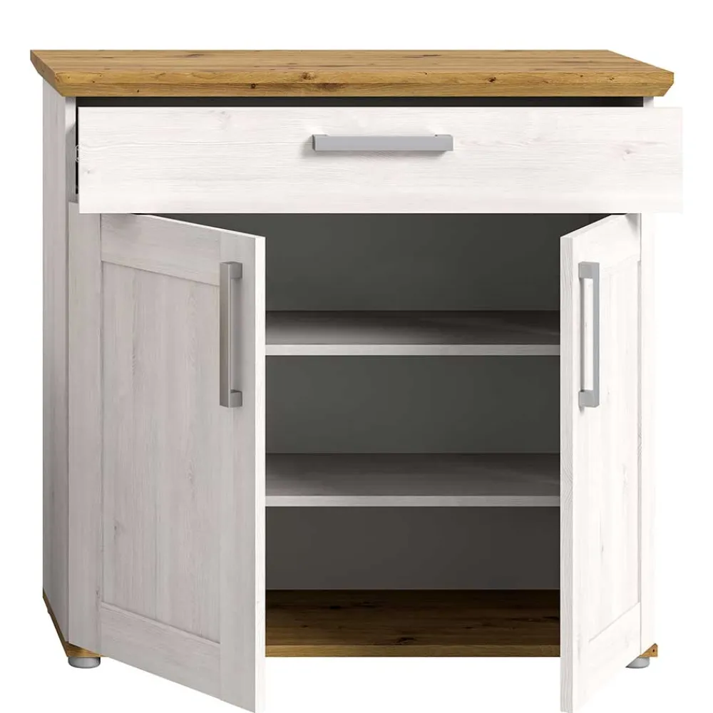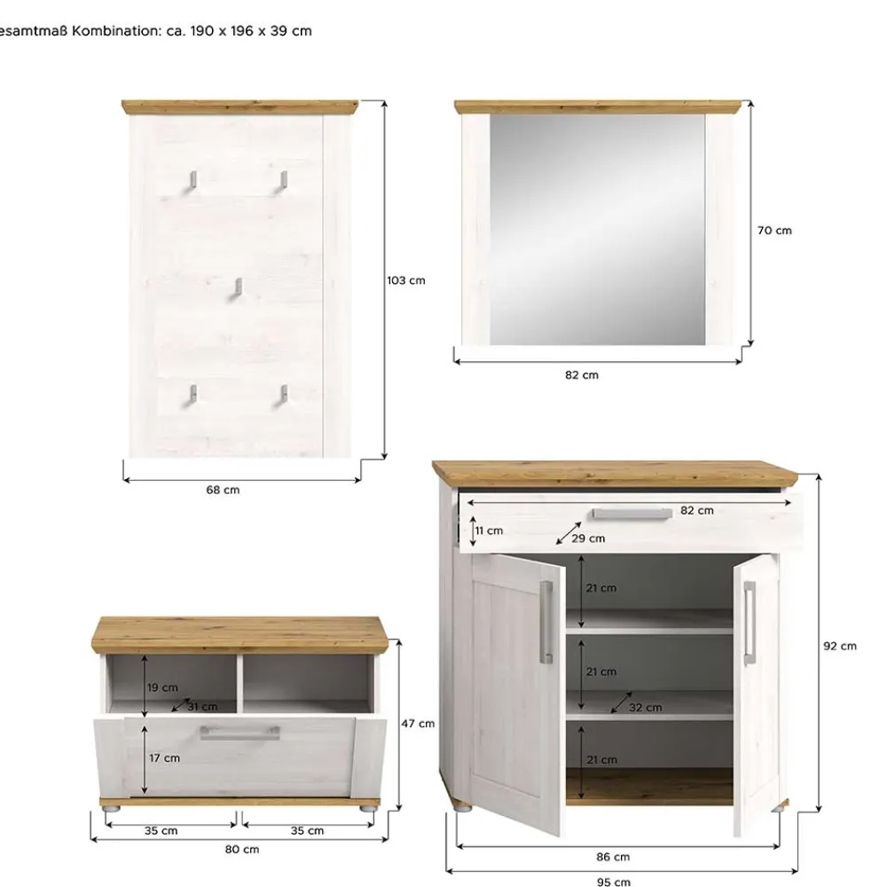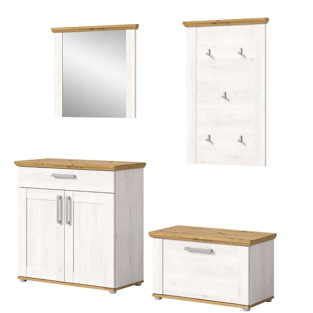 - Ansprechende Garderobenmöbel in Holzoptik Lärche Weiß und Wildeichefarben