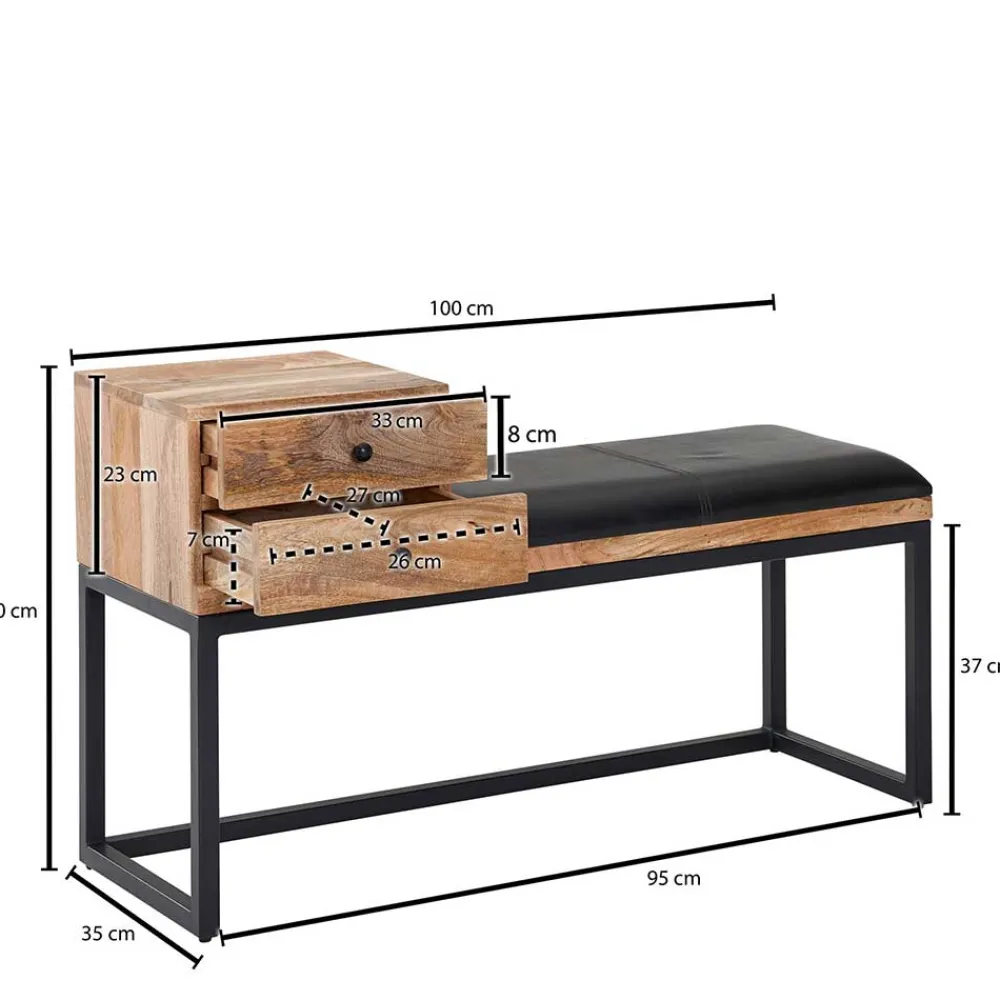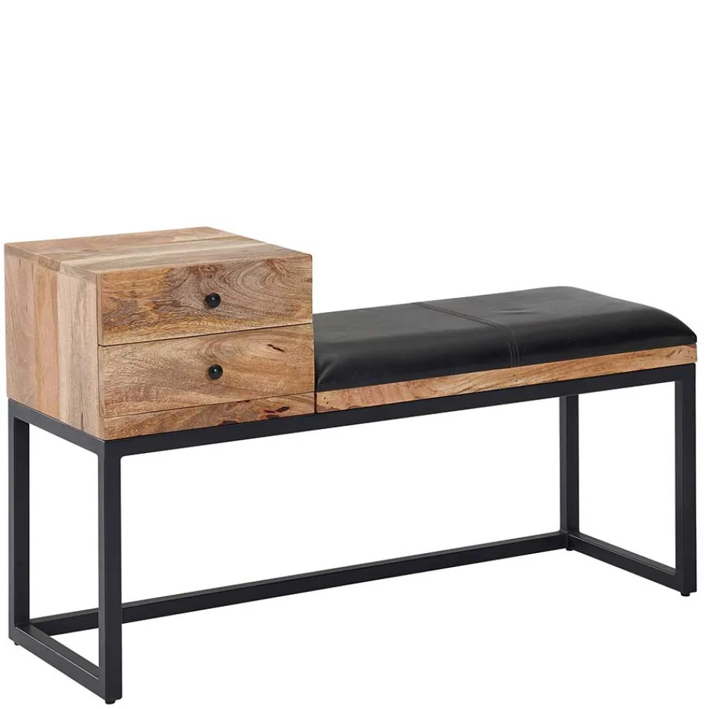 - Markante Garderobenbank in Schwarz und Holz Naturfarben