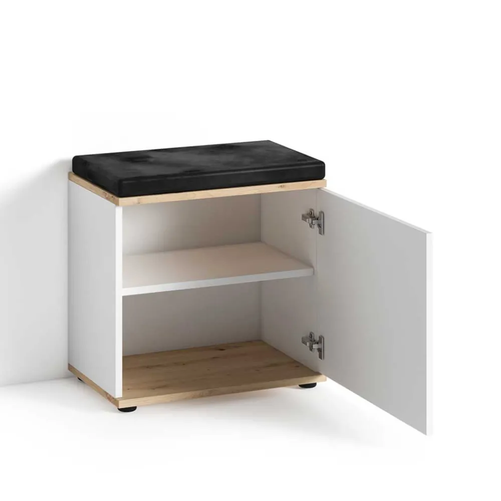 - Ansprechende Garderobenbank in Weiß und Wildeichefarben