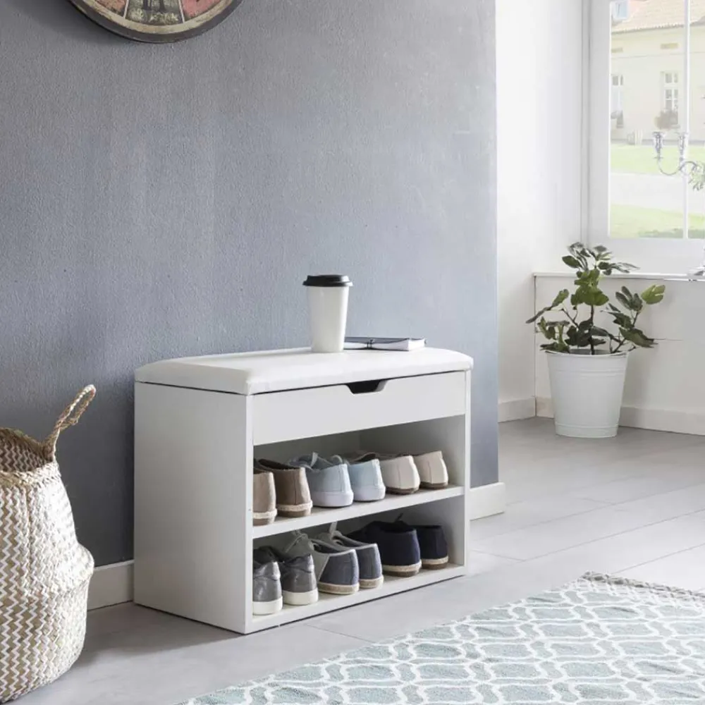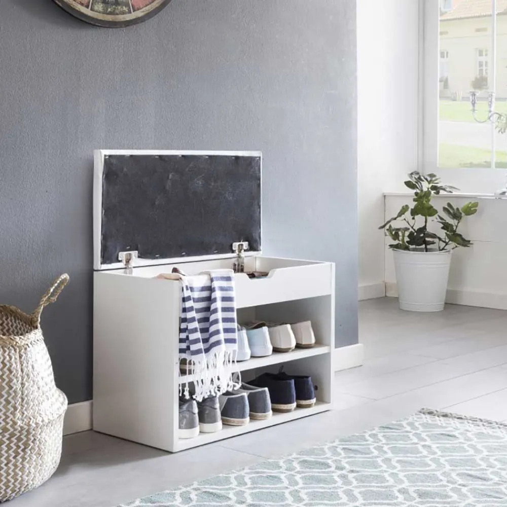 - Zwei offene Fächer bieten viel Platz für Schuhe