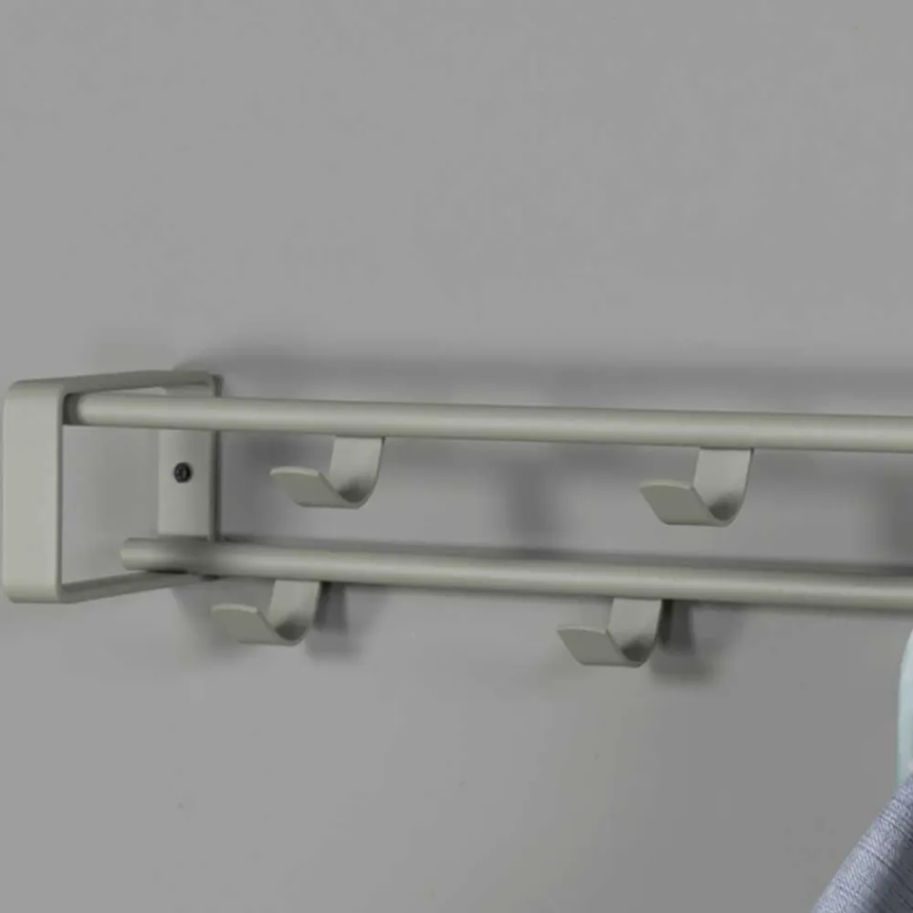 - Sieben praktische Kleiderhaken, versetzt montiert