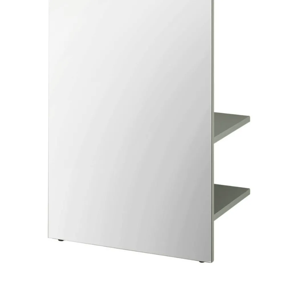 - Rückseitig zwei Ablagen für Schuhe oder Taschen