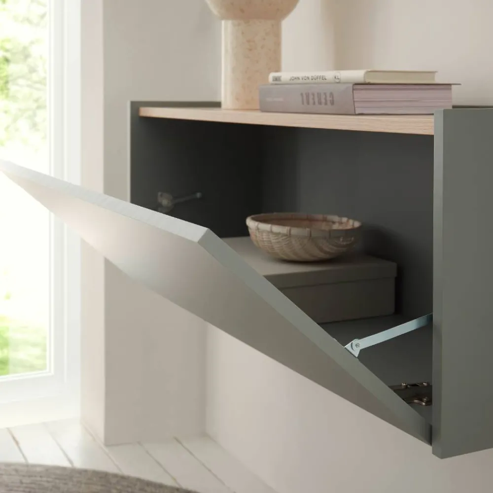 - Trendige Garderobenmöbel in Graugrün und Eichefarben