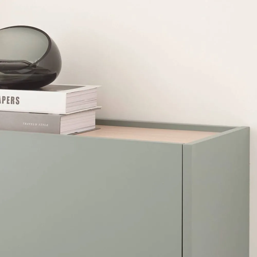 - Oberflächen pflegeleicht in Graugrün und Holzoptik Eiche melaminbeschichtet